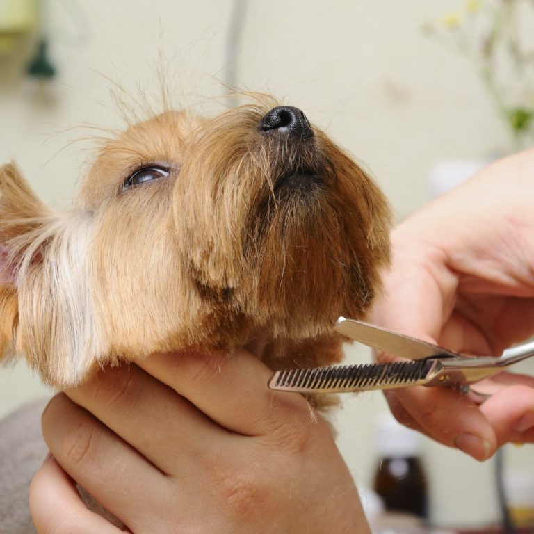 Professionelles Trimmen und Scheren für ein glänzendes Fell.